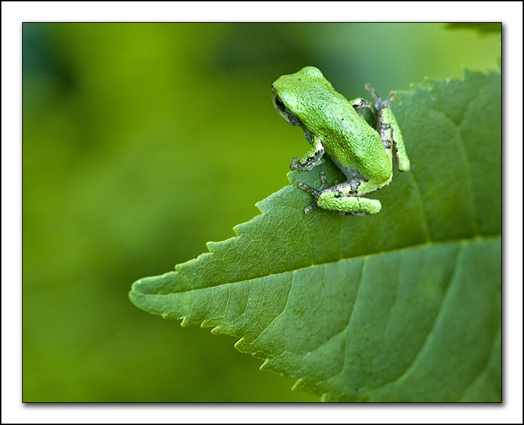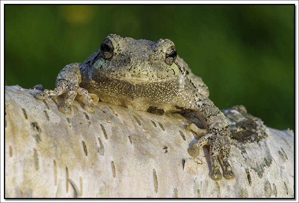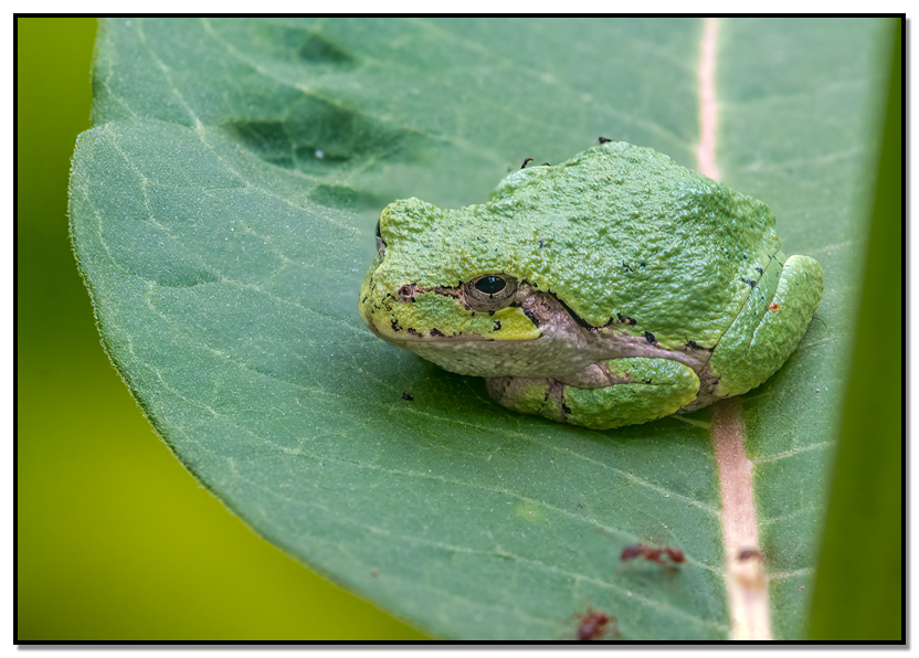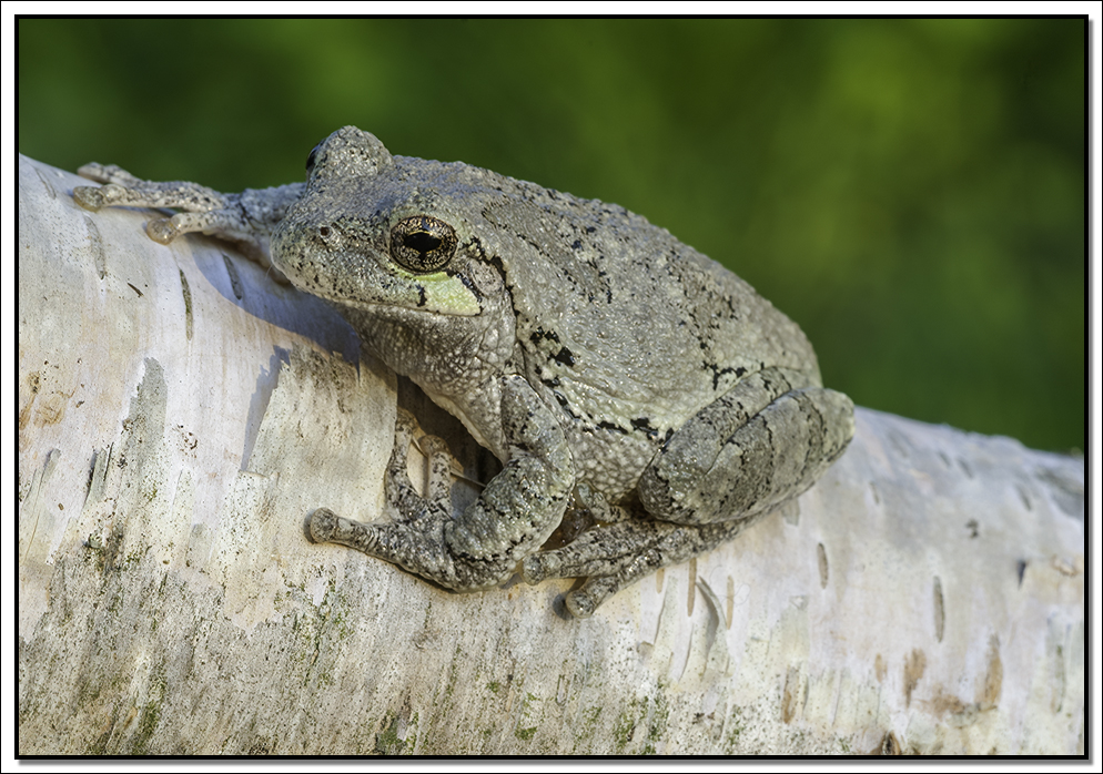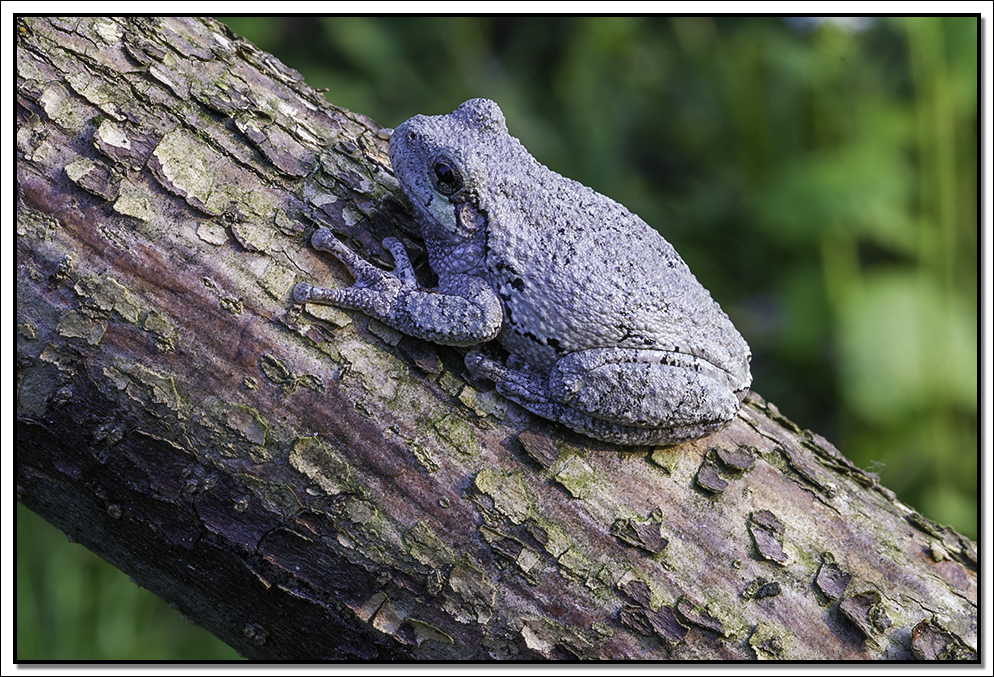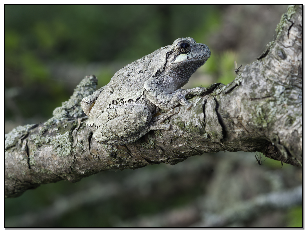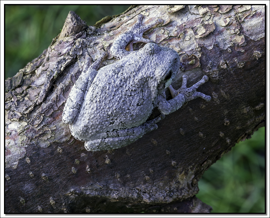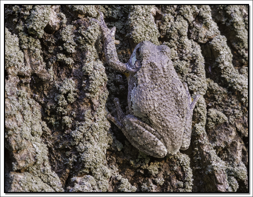 Gray Treefrog are seldom seen. This is due to a couple of reasons: - they live most of their lives high in the tree canopy; they are primarily nocturnal; they can change their colours to match their surroundings, like chameleons; and, their skin is very warty to help blend in with tree bark.