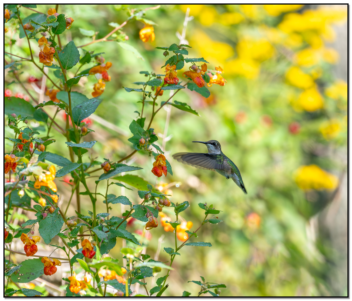- HABITAT -Ruby-throated Hummingbirds are primarily found in North America, particularly in habitats that include deciduous forests, forest edges, orchards, gardens, and coastal areas. They are also known to inhabit parks and suburban areas with suitable flowering plants. Its breeding range spans from southern Canada, throughout the eastern United States, and into parts of Central America. During migration, they traverse the Gulf of Mexico to reach their wintering grounds in Central America, Mexico, and even into northern South America..
