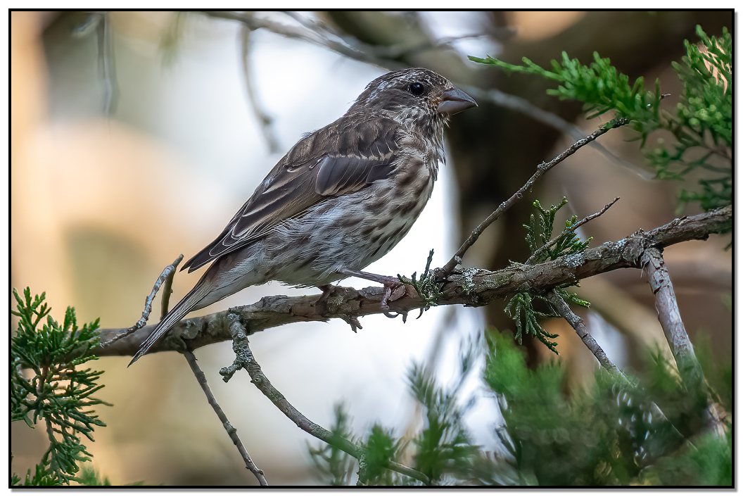 - HABITAT - Purple Finches require evergreens for nesting. The breed right across Canada from Yukon to Newfoundland, South in the western mountains of California and from Minnesota to West Virginia.