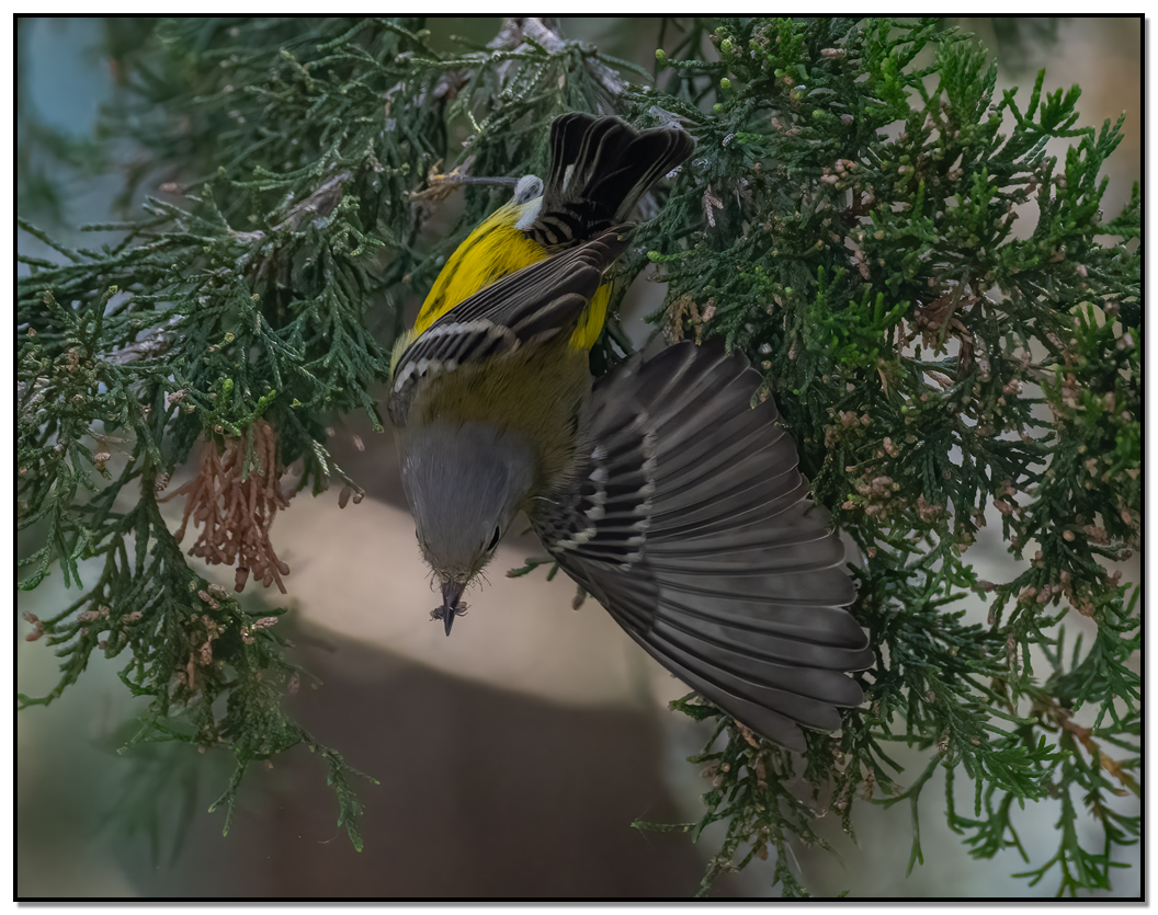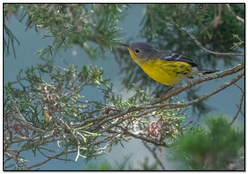 - HABITAT - Magnolia Warblers nest in dense conifers such as spruce, balsam fir, and hemlock. Never in Magnolia Trees. They breeds from British Columbia across central Canada to northeastern United States, and in Appalachian mountains south to Virginia. They winter in Central America and the Caribbean Islands.