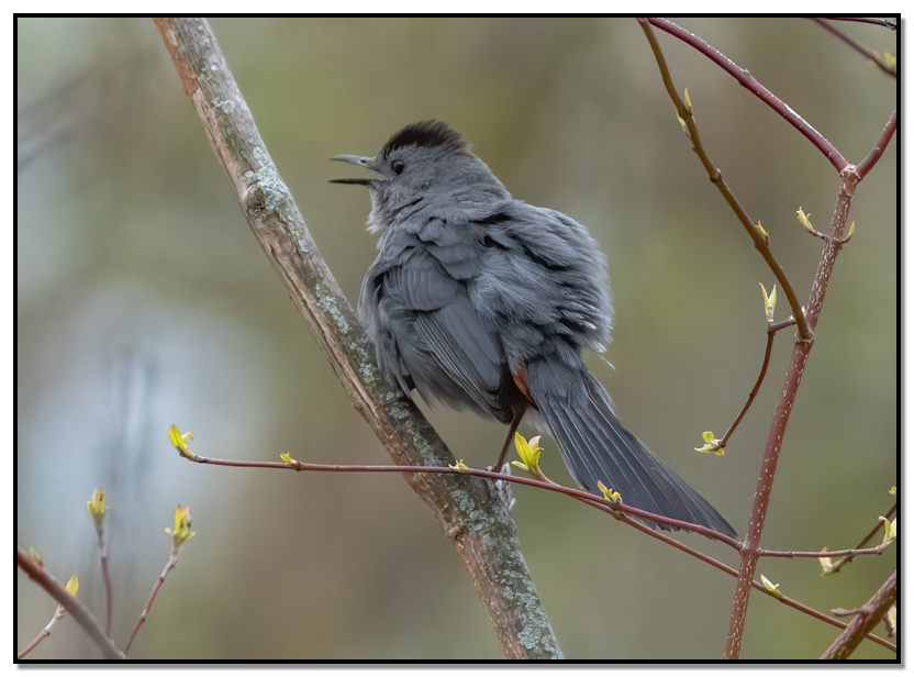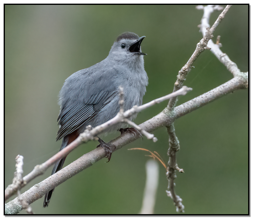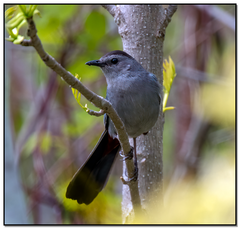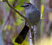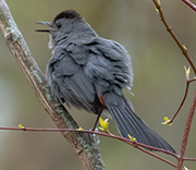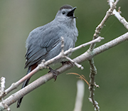 - Grey Catbirds get their name from their cat like calls. Like many members of the Mimidae, it also mimics the songs of other bird and other sounds.