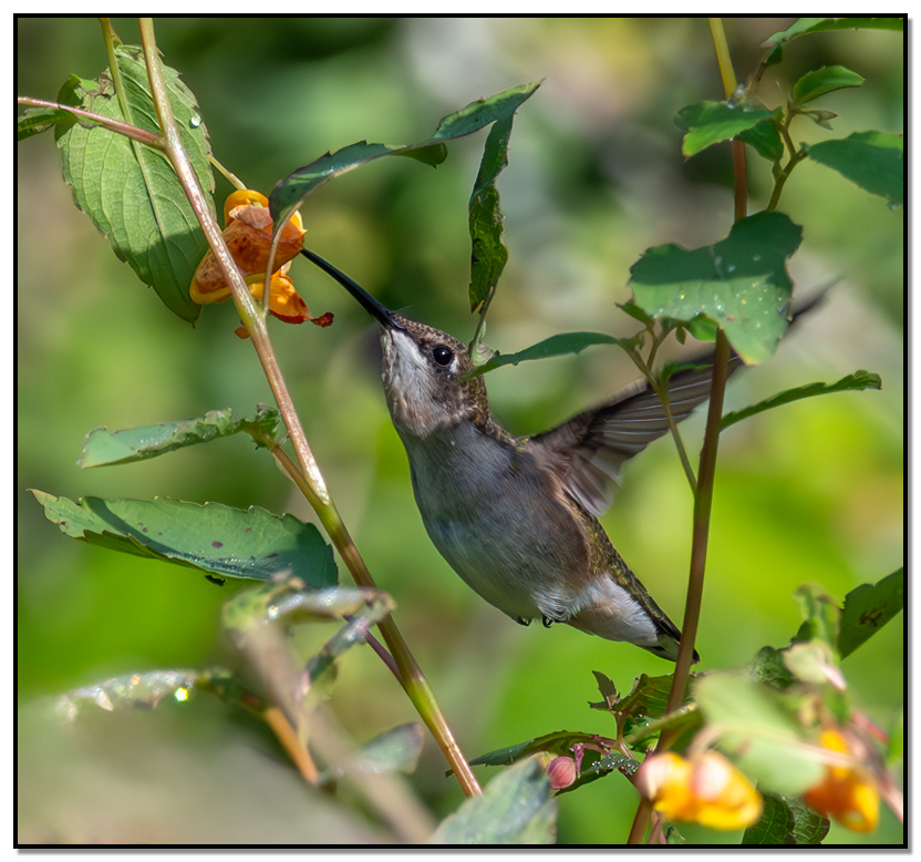 - HABITAT -Ruby-throated Hummingbirds are primarily found in North America, particularly in habitats that include deciduous forests, forest edges, orchards, gardens, and coastal areas. They are also known to inhabit parks and suburban areas with suitable flowering plants. Its breeding range spans from southern Canada, throughout the eastern United States, and into parts of Central America. During migration, they traverse the Gulf of Mexico to reach their wintering grounds in Central America, Mexico, and even into northern South America..