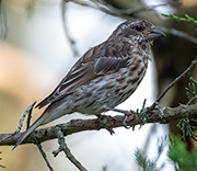 - DIET - Purple Finches eat mainly seeds of coniferous trees. In winter you may see Purple Finches eating seeds of low plants like dandelions, ragweed, and cocklebur. In the summer they also eat some insects, including aphids, caterpillars, grasshoppers, and beetles..