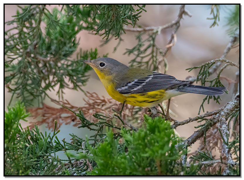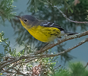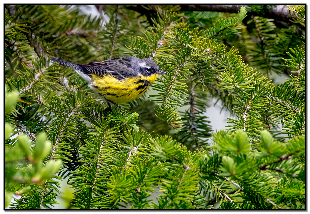 - HABITAT - Magnolia Warblers nest in dense conifers such as spruce, balsam fir, and hemlock. Never in Magnolia Trees. They breeds from British Columbia across central Canada to northeastern United States, and in Appalachian mountains south to Virginia. They winter in Central America and the Caribbean Islands.