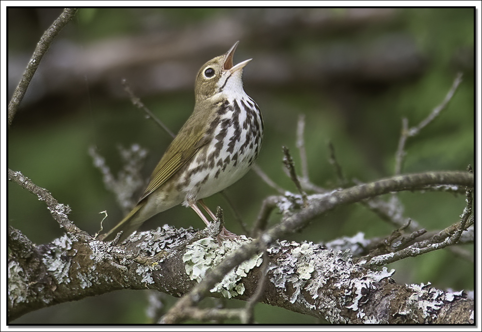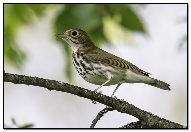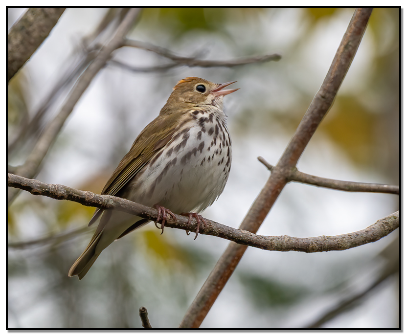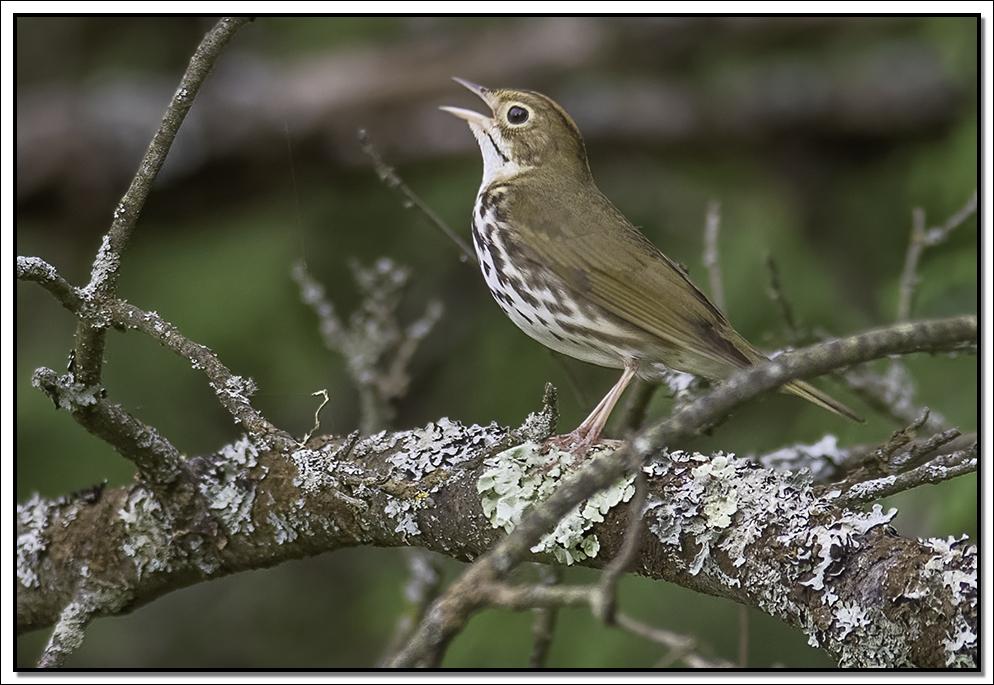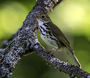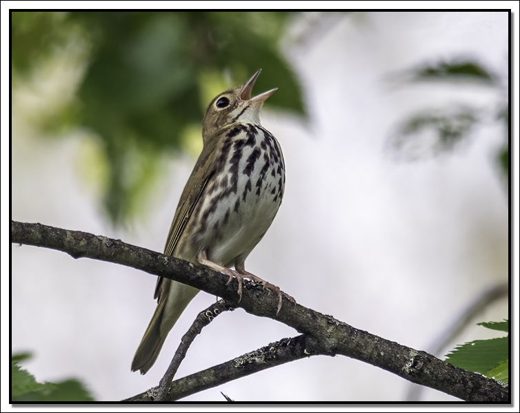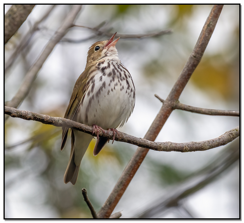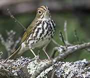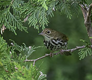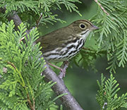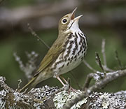 - FACTS - The Ovenbird is a warbler that acts and looks much like a thrush. In thrush character, it spends most of it's time foraging on the forest floor. They are elusive and will likely be heard more than sighted as their call echoes through the woods during the spring and early summer. The summer call sounds like: ‘tea-Cher, tea-Cher, tea-CHER, Tea-CHER, TEA-CHER’.